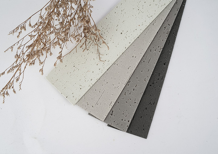 主要原料為礦土、礦石、礦粉等彩色無機礦物粉料,添加少量水性高分子聚合物作為改性劑, 通過分子結構改性重組,低溫微波成型,形成有一定柔韌性的輕質飾面材料傳統建材。 產品生產周期快、可替代瓷磚、涂料、大理石等高能耗低環保的傳統建材。